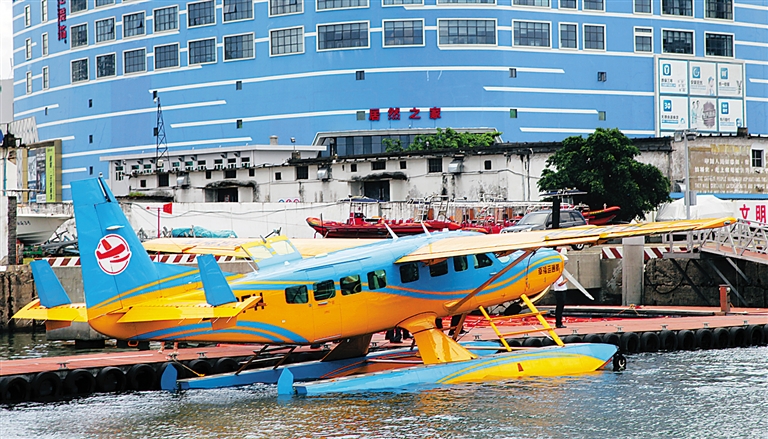 据了解,琼州海峡水上飞机投资运营主体为海南海峡航运股份有限公司,此次演练启用了两架赛斯纳208B型水陆两用飞机,今天中午,水上飞机预定降落的海域以及泊位在经过海事部门在内的多部门联合行动的交通管控后,符合水上飞机降落与停靠条件。