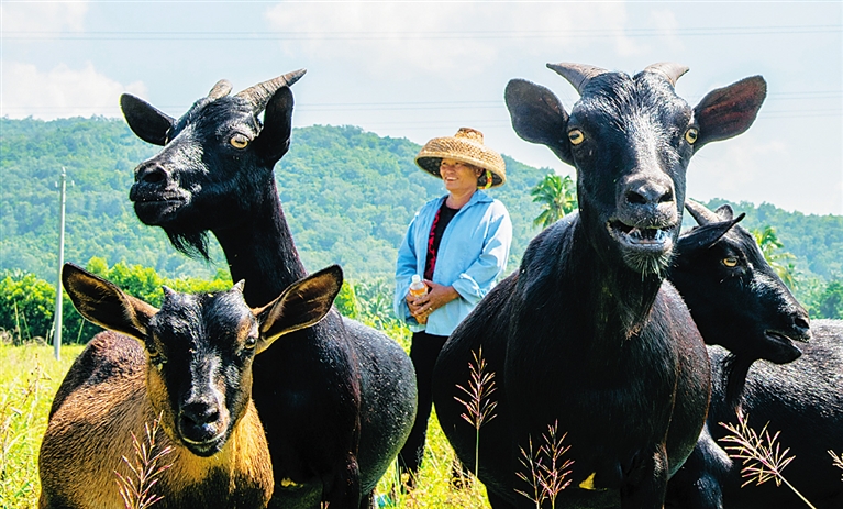 陵水黎族自治县积极探索“龙头企业/公司/合作社+贫困户”的扶贫开发模式,引进有实力、有品牌的龙头企业到贫困村投资兴业。图为贫困户在养羊专业合作社打工。
