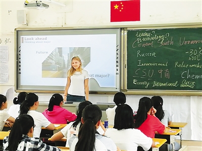 7月26日,位于五指山市的海南省农垦实验中学校园,5名分别来自意大利、埃及、加拿大、马来西亚的大学生与20名中国大学生一道,开展暑期支教活动。本报记者 贾磊 通讯员 王国军 摄