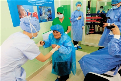 从上午7时30分医院准备手术,到晚上7时消毒离开,海南医疗义诊队忙了整整一天。截至26日工作结束,医疗队顺利完成了53例白内障复明手术。同时,术前筛查工作仍在进行,26日当天,140人完成了术前筛查,48人符合手术指征。至此,已有418人接受了筛查。
