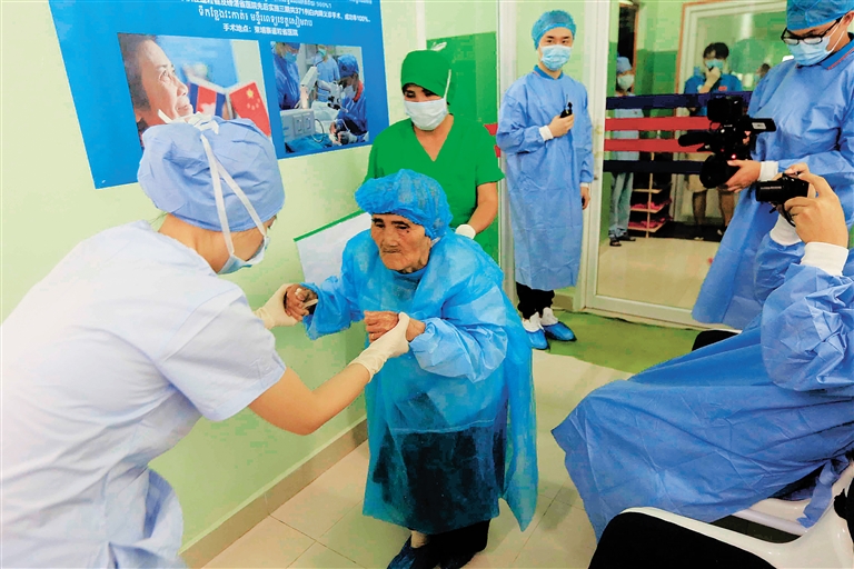 上午9时30分,78岁的老人Thoevng Soeung笑盈盈地从手术室出来,成为今天第一个接受手术的老人。