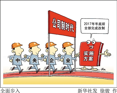 实施方案给出了明确时间表:2017年年底前,除中央金融、文化企业外,按照全民所有制工业企业法登记、国资委监管的中央企业全部改制为按照公司法登记的有限责任公司或股份有限公司。