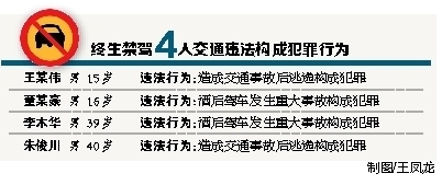 让人惋惜痛心的是,只有15岁的王某伟还是一名在校学生,他与16岁的董某豪还不到考驾驶证的年龄就被终生禁驾,即使他们到了18岁考驾驶证的年龄也无权考驾驶证。