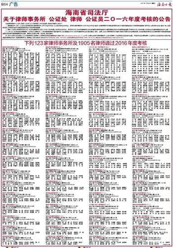 海南省司法厅 关于律师事务所公证处律师公证员二O一六年度考核的公告