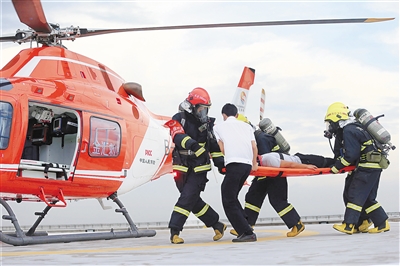 由于灾情楼层高,火势较大,消防救援工作难度加大。指挥部充分利用37米直臂云梯,53米、55米登高平台消防车,救援直升机等高端装备开展精准营救。持续了近1个小时,一场惊心动魄的超高层建筑火灾被成功控制。