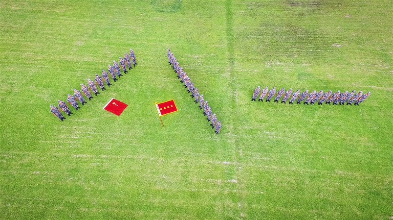 7月28日,驻琼海75571部队,面对军旗重温誓词,庄严宣誓,时刻警示不忘初心,牢记使命以高昂的姿态和昂扬的斗志迎接“八一”建军节。本报记者 袁琛 实习生 陈斯华 摄
