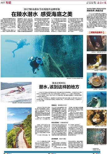 经历本次陵水潜水节,摄影师们纷纷表示,节庆主会场陵水分界洲岛有着软珊瑚、盘状珊瑚和鹿角珊瑚等绚丽多彩的特色海洋生物,保存完整的海底景观是当地发展潜水旅游独特的优势。