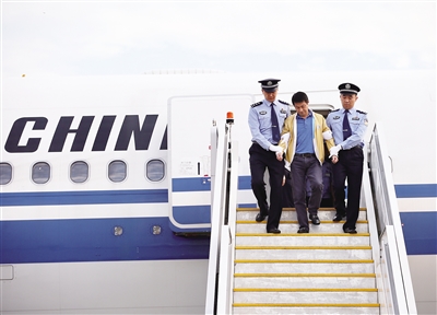 7月29日,在北京首都机场,“百名红通人员”任标回国投案。 当日,在中央反腐败协调小组国际追逃追赃工作办公室的统筹协调下,在格林纳达等加勒比国家的协作配合下,经中央有关部门和江苏省追逃办密切合作,第92号“百名红通人员”任标回国投案。这是第42名归案的“百名红通人员”。 新华社记者 金立旺 摄