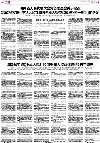 海南省实施《中华人民共和国老年人权益保障法》若干规定