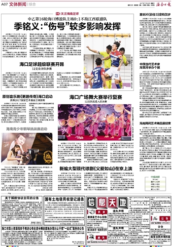 海南日报 文体新闻综合 007 2017-07-301 2017年07月30日 星期日