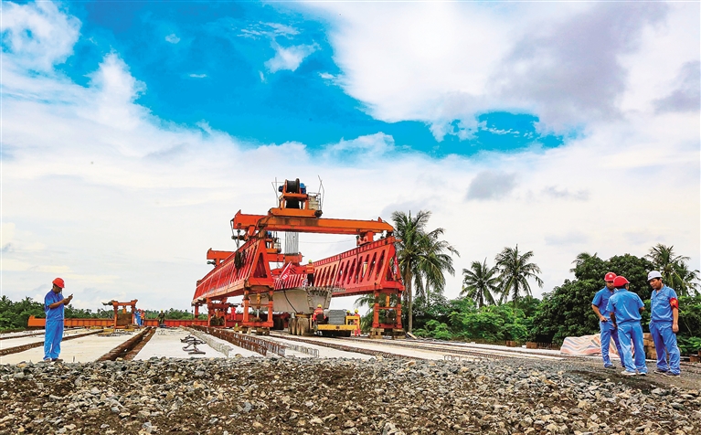 文琼高速(文昌市至琼海市高速公路)文昌河支流大桥施工工地,施工人员正在加紧施工。目前文琼高速公路项目的桥梁建设已经完成30%,路基建设已经完成45%,预计年底桥梁和路基工程全部完成。本报记者 陈元才 通讯员 张璐 摄