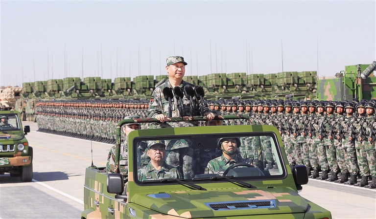 习近平强调,安享和平是人民之福,保卫和平是人民军队之责。天下并不太平,和平需要保卫。今天,我们比历史上任何时期都更接近中华民族伟大复兴的目标,比历史上任何时期都更需要建设一支强大的人民军队。我们要深入贯彻党的强军思想,坚定不移走中国特色强军之路,努力实现党在新形势下的强军目标,把我们这支英雄的人民军队建设成为世界一流军队。