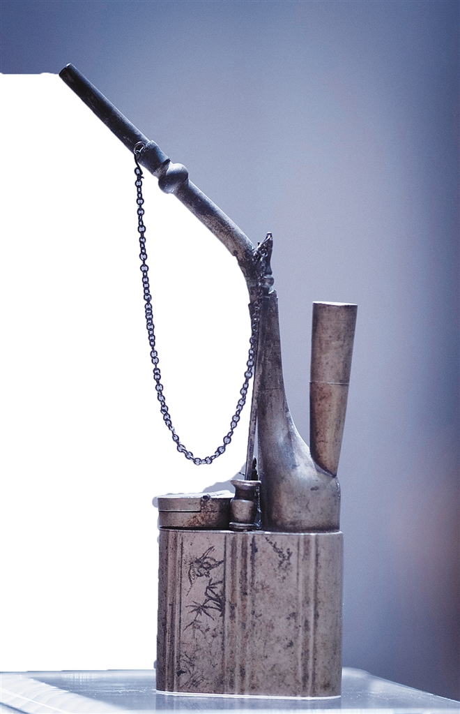 在这些生活物件中,还有一件十分珍贵,这件白沙起义首领王国兴使用过的水烟筒是周恩来赠送的。银制水烟筒上刻着花饰,至今品相良好。黎族首领王国兴作为海南岛著名的民族战斗英雄,在开国大典上受到了毛泽东主席、周恩来总理的接见。