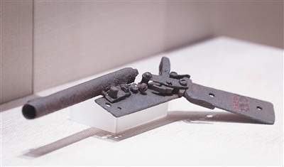 在诸多武器中,一件琼崖工农红军曾使用过的土铁枪引人注意。原来,由于历史久远,手枪外置的木柄已脱落,导致其内部结构清晰可见。参观者可直观看到其内部的枪管与螺丝。