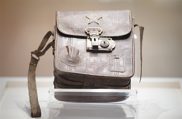 深咖色的公文包早已磨损得掉了皮,而这些磨痕正是见证了冯白驹为革命奔走的日子。与其同时展出的还有一块怀表,表面的银色已有些发黑。据介绍,这两件文物都是冯白驹生前经常使用的。近距离地凝视这些革命先烈们的贴身物件,这位被称为“琼崖人民的一面旗帜”的无产阶级革命家形象仿佛一下子立在了眼前。