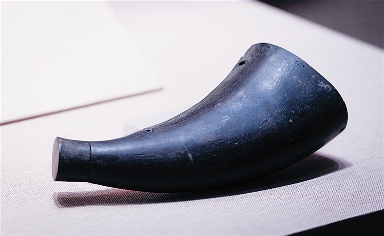 坚硬的深色牛角上雕刻着具有民族风情的花纹,这只牛角一端带着盖子,它的作用正是帮战士们储藏火药。除了牛角火药桶,展品中还有几个同样装饰有民族花纹的竹筒火药桶。这样的特色印记恰是体现出这是一支成长于海南岛的革命武装力量。