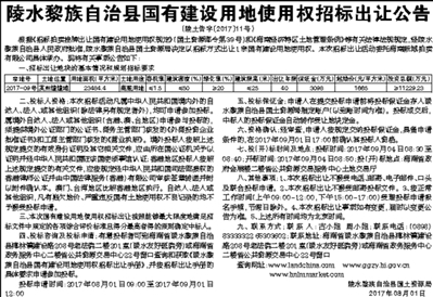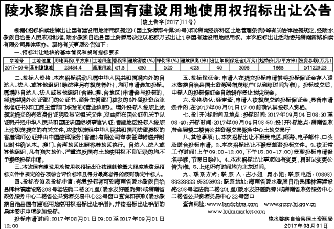 陵水黎族自治县国有建设用地使用权招标出让公告