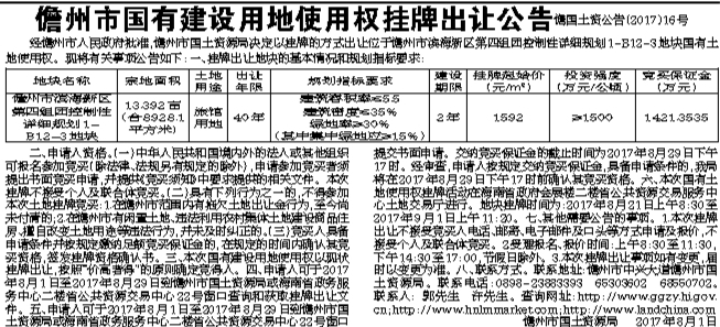 儋州市国有建设用地使用权挂牌出让公告儋国土资公告