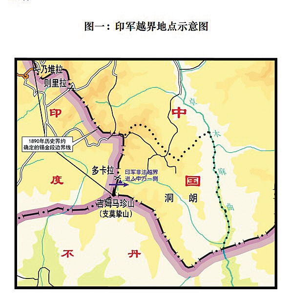 11.1890年条约已确定,中印边界锡金段起自与不丹交界的吉姆马珍山,这是中印边界锡金段的东端点,也是中国、印度、不丹的三国交界点。此次印度边防部队越界的地点位于中印边界锡金段的边界线上,距离吉姆马珍山约有2000多米之远。此次事件与三国交界点问题并无关系。印度应尊重1890年条约及其确定的中印边界锡金段东端点,无权单方面改变既定边界线及其东端点,更不得以此为由侵犯中国的领土主权。