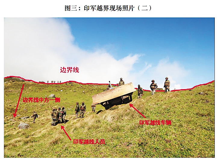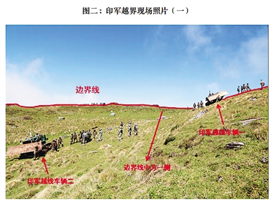 3.事件发生后,中国边防部队在现地采取了紧急应对措施。6月19日,中方通过外交途径紧急向印方提出严正交涉,对印方非法越界行为予以强烈抗议和谴责,要求印方立即将越界的印度边防部队撤回到边界线印度一侧。中国外交部、国防部、中国驻印度使馆在北京和新德里先后多次向印度提出严正交涉,强烈要求印度尊重中国的领土主权,立即撤回越界的边防部队。中国外交部、国防部发言人多次公开表态,说明事实真相,表明中方立场,并公布了印军越界的地图和现场照片(见附件1)。