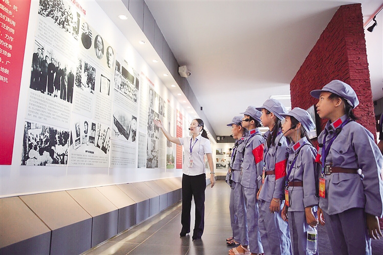 8月2日,在海口市琼山区云龙改编旧址陈列馆,讲解员给第一批红色志向义务小导游讲解琼崖革命历史。