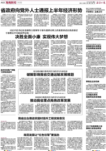 海南日报 海南新闻时政 002 2017-08-051 2017年08月05日 星期六
