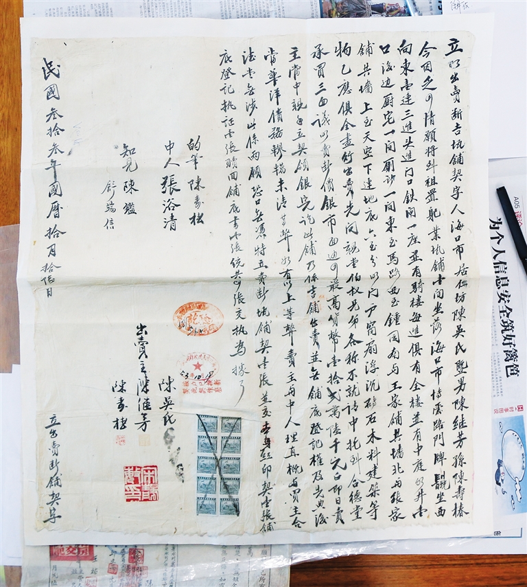 这一处小小房屋权属的更迭,印载着海南当时的时局变化。“像家族系列地契、见证政权交替的系列地契、本地的地契等等,都十分具有收藏价值和研究价值。”宋静敏说,目前他收藏的地契主要来自东北、广东、广西、云南、湖南、江西、海南等地,共有420多份。