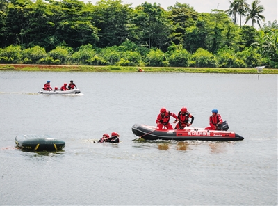 越野车涉水排查灾情,冲锋舟搜寻河面,直升机实施空中救援,潜水员深入河中搜救伤员,医护人员协同跟进施救……记者现场看到,随着指挥部传来的一次次指令,11支救援队开展了冲锋舟绕标快速救援、横渡救援、潜水打捞、翻舟自救、心肺复苏、直升机救援等多个项目的救灾演练。一个半小时后,当最后一批紧急物资抵达安置区,救援工作圆满结束,各救援队伍有序撤离现场。