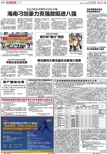 海南日报 文体新闻综合 007 2017-08-071 2017年08月07日 星期一