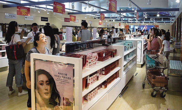 今年上半年,海口海关累计监管三亚、海口两家离岛免税店销售免税品41.77亿元,购物件数527.22万件,购物人数117.87万人次,同比分别增长26.20%、34.82%、32.71%。本报记者 宋国强 通讯员 甘学斌 摄