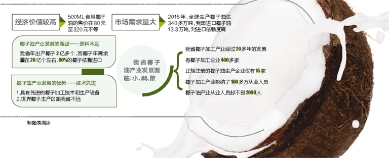 那么,如何打开眼界,借助现代化、产业化的思维和手段,将椰子油产业打造成海南新的经济增长亮点?是一个亟待给出答案的课题。