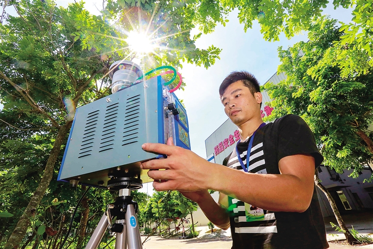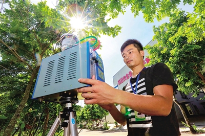 8月13日,在海口保税区内的某制药厂里,环保工作人员正在检测该厂的空气质量。据介绍,近日有市民投诉该药厂有臭味影响到周边居民的生活,接到投诉后当地环保部门立即介入调查,要求该药厂立刻整改臭味源头,并派出工作人员每天检测制药厂附近的空气质量。本报记者 陈元才 摄