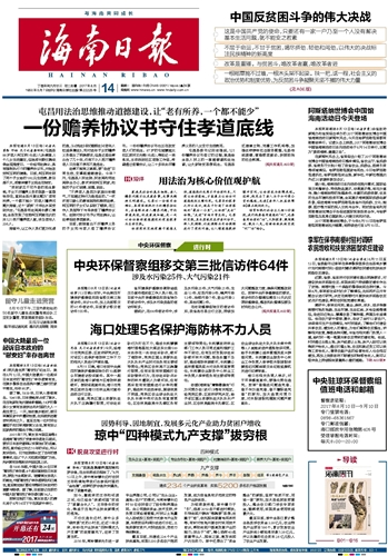 海南日报 头版 001 2017-08-141 2017年08月14日 星期一