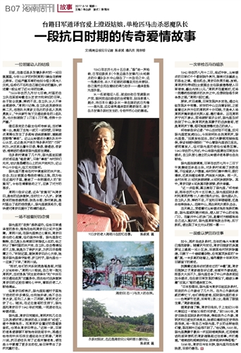 一段抗日时期的传奇爱情故事