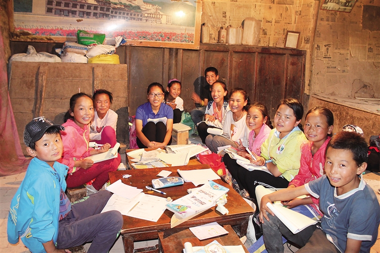 每天跟藏族孩子们在一起,志愿者普云百感交集。他说,作为一个志愿者,我们能做的就是把自己有限的知识尽最大的努力教授给每一个孩子,让他们感受到我们的认真负责,用自己的实际行动让每一个孩子知道知识的可贵。