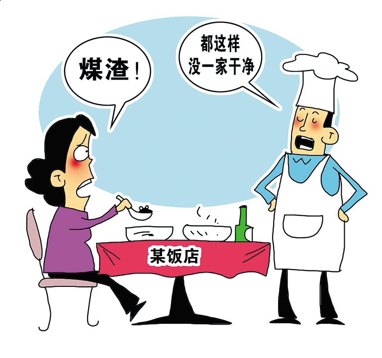 按理说,顾客指出了菜里的问题,店家就要认真对待,及时查找原因。可该店员倒好,非但不思反省,竟还理直气壮回怼顾客,甚至大言不惭地说“没有一家干净的”,服务意识哪去了,商家道德哪去了?如此应对无疑是自砸招牌。这一现象虽是个例,但却揭示了餐饮业存在的共性问题,一些店家在食品安全上,不去找主观原因,反倒左右推脱,其结果无疑是自毁形象。这正是:
