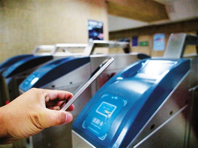 8月14日,在北京地铁古城路站,一名乘客拿出手机准备刷手机进站。 14日起北京地铁全线路可刷手机乘车。乘客安装手机一卡通,通过刷手机即可畅行北京地铁。同时,用户可通过APP在线充值,无需在人工网点排队充值。手机一卡通与一卡通储值卡一样,刷卡采用脱机离线交易模式,不依赖网络环境,但在线充值需要网络支持。 新华社发