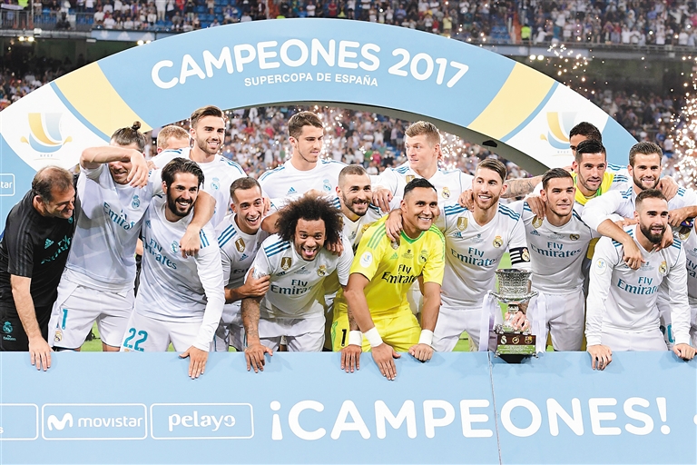 首回合皇马在客场以3:1击败巴萨。本轮回到伯纳乌,尽管C罗因红牌遭遇停赛,贝尔也坐上替补席,但阿森西奥的世界波和本泽马的进球还是助“白衣军团”轻松击败老对手,继上赛季西甲和欧冠冠军以及今夏的欧洲超级杯冠军后捧起又一座奖杯。
