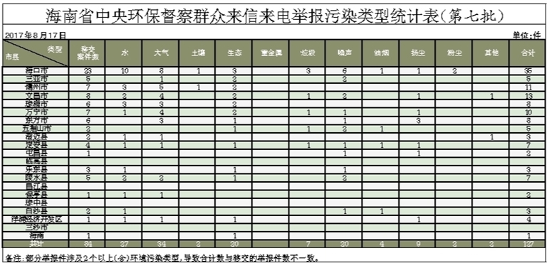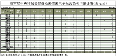 海南省中央环保督察群众来信来电举报污染类型统计表(第七批)