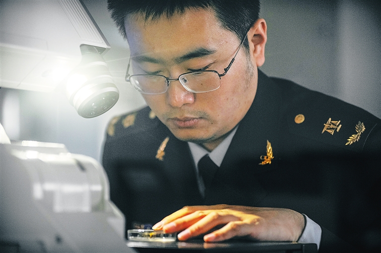 在海南出入境检验检疫局植检中心的标本室里,“80后”昆虫分类学博士蔡波一边目不转睛地观察体视显微镜下的昆虫,一边小心翼翼地制作标本。