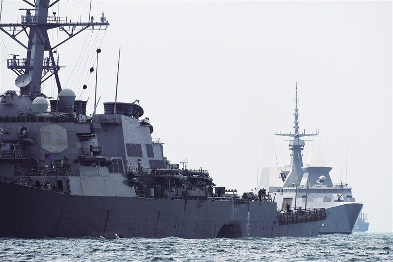 新加坡政府当天发布公告说,新加坡方面正在开展搜救行动,目前空军已派直升机将美国军舰上受伤人员转移到新加坡接受治疗,港务局派出3艘拖船、海军和警察海岸卫队派出4艘舰艇提供救援。