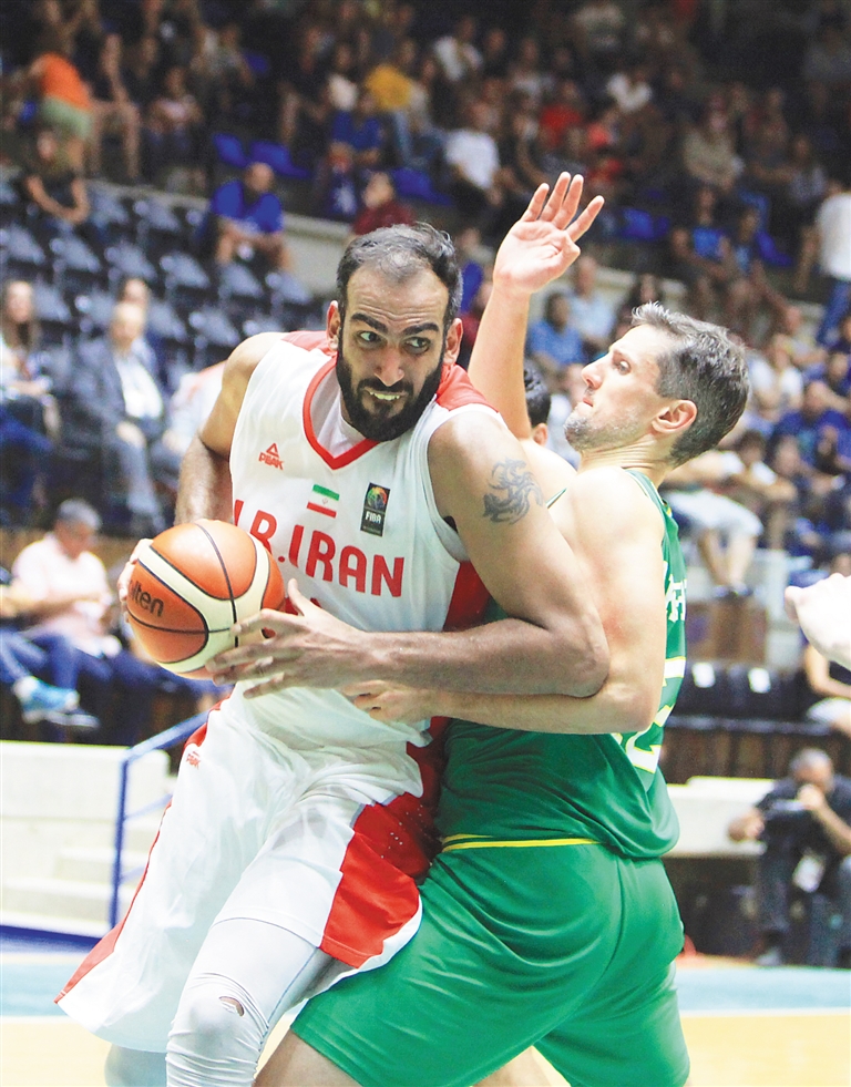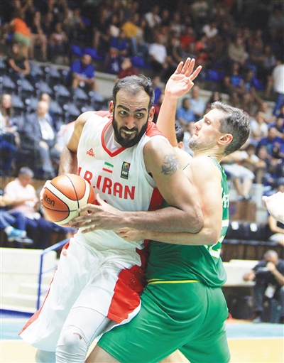8月21日,在黎巴嫩举行的2017年男篮亚洲杯决赛中,澳大利亚队以79比56战胜伊朗队,夺得冠军。 图为伊朗队球员哈达迪(左)带球突破。新华社发