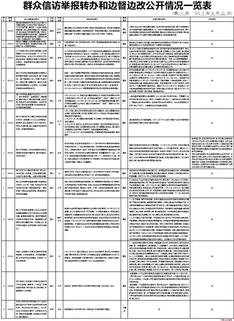 群众信访举报转办和边督边改公开情况一览表