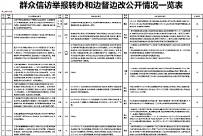群众信访举报转办和边督边改公开情况一览表