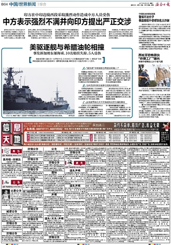 中方表示强烈不满并向印方提出严正交涉