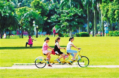 夜晚的海口,凉风习习。到了海口,万绿园不可不去。作为海口市民休闲散步的城市绿地,万绿园一边是高高的椰树,一边是浩瀚的大海,千余亩土地花草芬芳,椰树婆娑摇曳,桥连着路,路连着海,在寸土寸金的城市里,勾画出一幅静谧的南国风光。