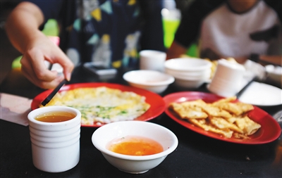 在早茶的餐桌上,蒸排骨、凤爪、毛肚、肠粉、虾饺、焖羊肉等上百种茶点应有尽有。要把琳琅满目的各色小吃吃个够,细细品味里面的滋味,让茶的清新滋润喉咙,这本就是一个花费时间的过程。因而喝一次早茶至少要预留出一个小时的时间。许多人会提出:吃早茶多么浪费时间啊!可是,在海口人的心中,早茶早已经成为一种文化的延续,是享受生活的一种方式。在这顿早茶的时间里,充分地放松心情,和家人朋友谈天说地,就是“最有味”的生活态度。