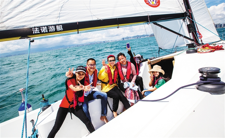 8月11日,三亚整合海空立体旅游资源,新鲜出炉“海天一色”旅游新产品。游客来到三亚可以享受“帆船+游轮+水上飞机”的多元组合旅游产品。