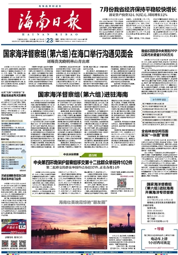 海南日报 头版 001 2017-08-231 2017年08月23日 星期三