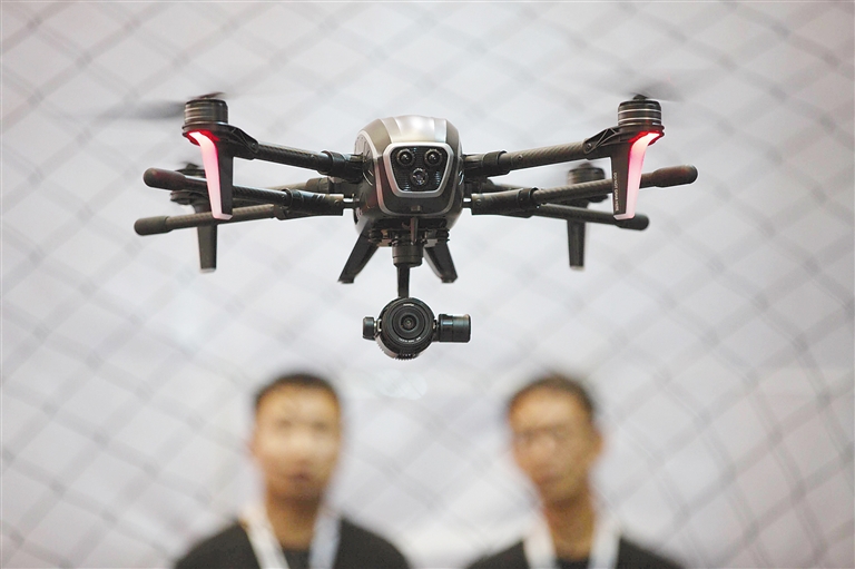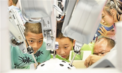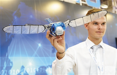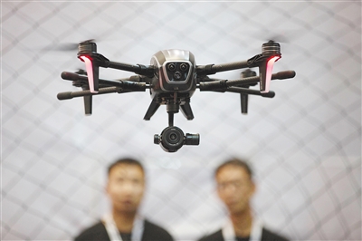 2017世界机器人大会23日在北京开幕。图1:大会上展示的一款智能机器人设备。图2:工作人员在演示一款无人机。图3:市民在会场参观手术机器人。图4:德国技术人员展示仿生机器蜻蜓。 新华社发
